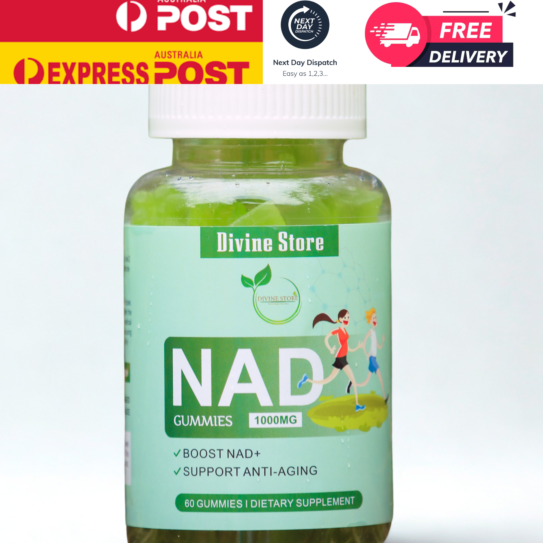Unlock Cellular Vitality with Divine Store's NAD+ Gummies. Experience the synergy of science and nature with Divine Store's NAD+ Gummies. Each gummy is meticulously formulated with 500mg of Nicotinamide Adenine Dinucleotide (NAD+), complemented by potent ingredients like Nicotinamide Riboside (NR), Nicotinamide Mononucleotide (NMN), Resveratrol, Coenzyme Q10 (CoQ10), and Vitamin B3. This powerful blend is designed to support energy production, cellular repair, and overall wellness.